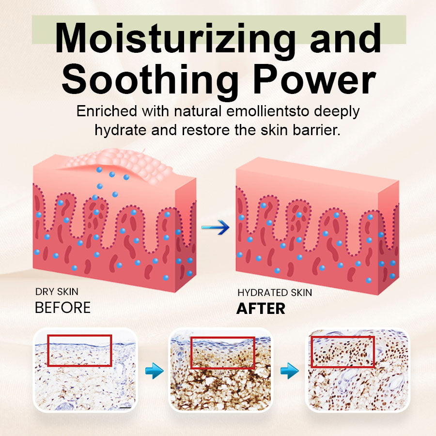 - Soothing Effect: Its gentle nature can soothe sensitive or irritated skin, reducing discomfort while providing long-lasting moisture and hydration.