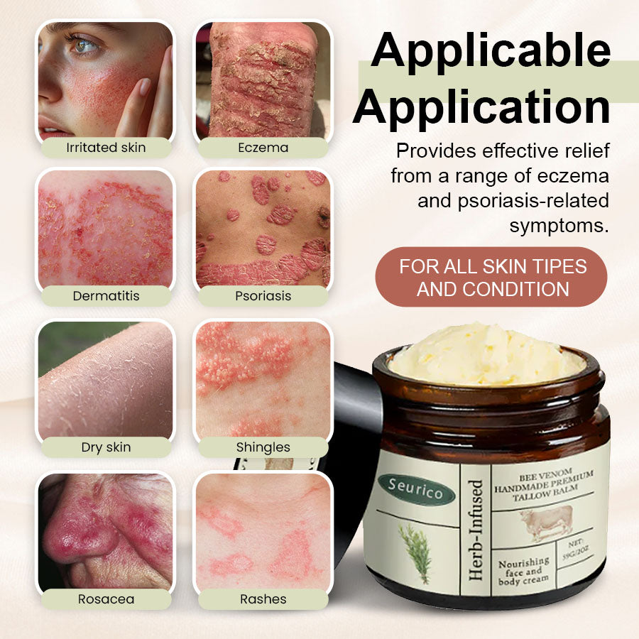 "I had been struggling with facial psoriasis for years, trying numerous creams and treatments with little success. When I stumbled upon Seurico™ Bee venom tallow cream, I was skeptical but hopeful. After a few weeks of consistent use, I noticed a remarkable difference. The irritation and redness faded, and my skin felt much more comfortable. It’s been a game changer for me. I can finally go out without feeling self-conscious about my skin. Highly recommend it for anyone dealing with eczema!