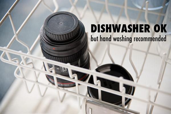 The Camera Lens Mug can hold up to 12 ounces (355 mL) of your favorite brew, and the water-tight twist-off lid features a thumb slider to prevent spills.