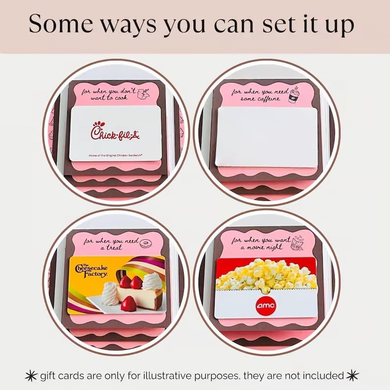 Pull. Pop. Flip. Watch each gift card spring out as the page turns—it’s a surprise in motion. Each pull-tab action delivers a gift card with tactile charm, making the recipient feel the joy of discovery with every page.