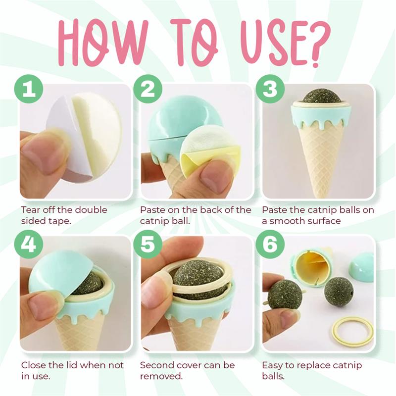 We’ve made sure this toy is as convenient as it is fun. The Ice Cream Mint Ball comes with a dust cover to keep it clean and fresh when not in use – no more worrying about dirt or odors! The strong adhesive tape lets you securely stick it to any smooth surface, whether it’s the wall, floor, or window, so your cat can enjoy endless entertainment wherever they roam. With its durable design, it’s built to last through countless play sessions, making it the perfect addition to any cat owner’s toolkit. It’s stress-free play, designed for both you and your cat.