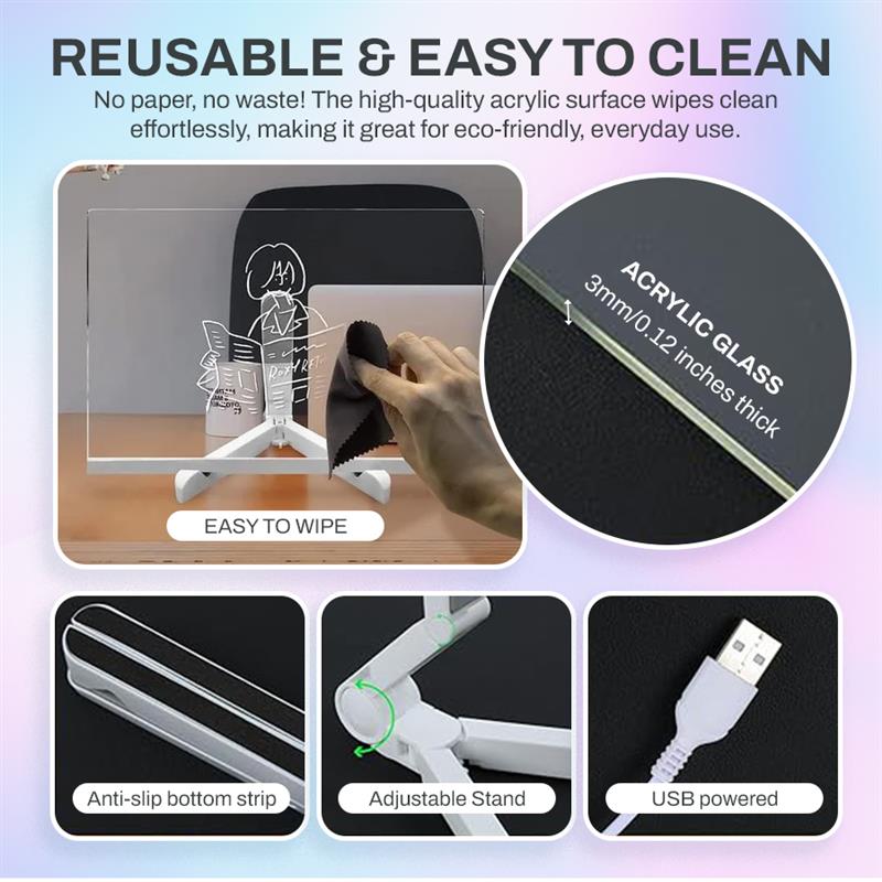 This LED board isn’t just for artists—it's for anyone who loves to create! Use it as a doodle board to capture spontaneous ideas, a drawing board to sketch your latest masterpiece, or even a planning board to organize your thoughts in a visually stunning way. With the ability to write, erase, and rewrite, it's like having an endless canvas to bring your visions to life. Use it for work, play, or even as a luminous memo board to keep your important notes glowing!