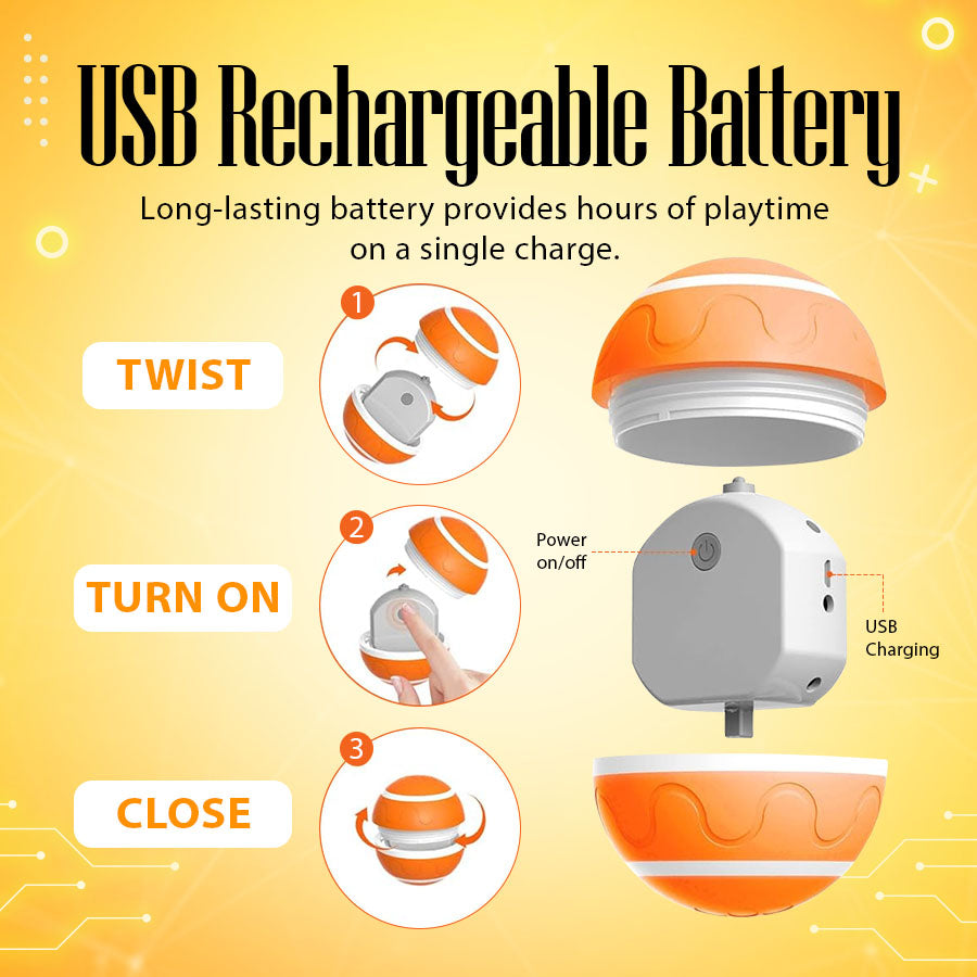 Getting started with the Pet Bounce Ball is simple – just press the button, and the ball will start bouncing on its own, bringing endless fun to your pet. It comes with a built-in rechargeable battery, and you can easily charge it with any USB charger or power bank. Once fully charged, the ball provides hours of playtime! When you’re done, simply press and hold the button for a few seconds to turn it off, saving energy and ensuring safety.