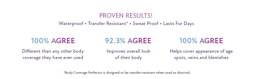 "This is the best product I’ve tried for masking spider veins, vein “bursts” and varicose veins. I have been able to comfortably wear dresses and shorts the first time in years. My daughter remarked how happy she is to see me set my legs “free”! My only wish is for it to be truly transfer/sweat/waterproof."